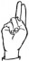 На ћирилици написано УМИЉЕН КЕСЕГИЋ састоји се из 13 слова [?]. Исписано ћириличном једноручном азбуком за глувонеме: